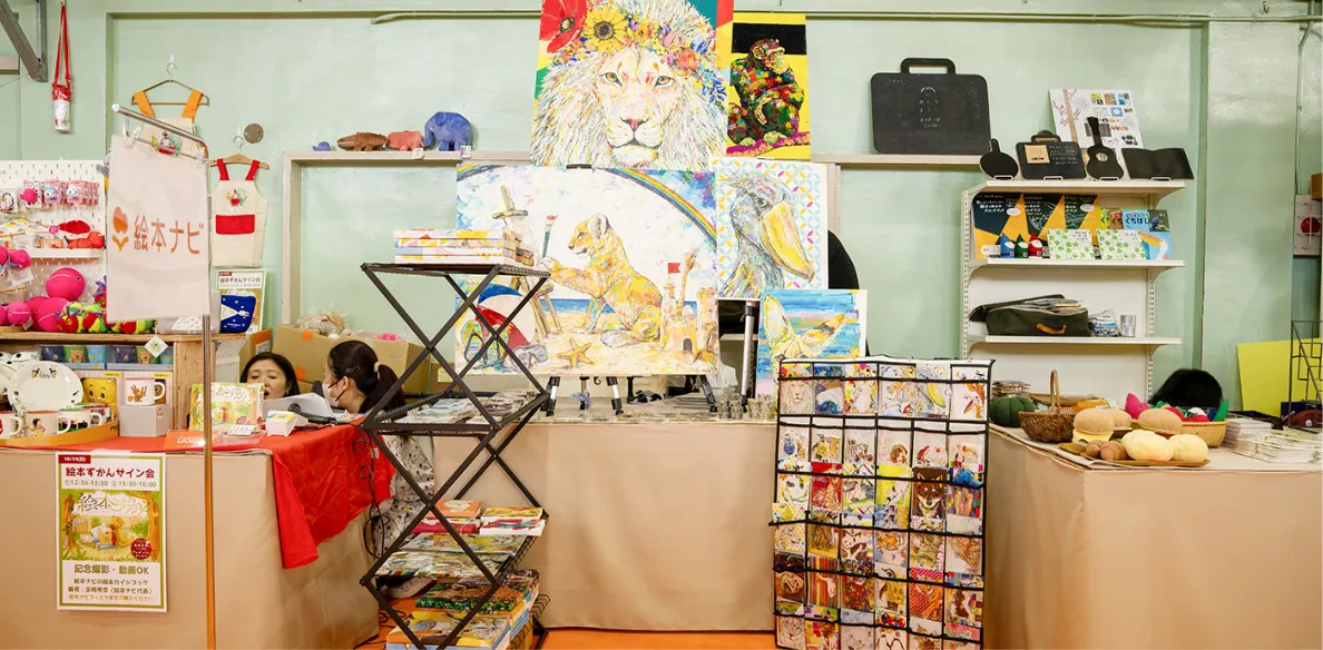 イタリア・ボローニャ国際絵本原画展入選者など、板橋区ゆかりの絵本作家、クリエイターによるグッズ販売やワークショップ。絵本だけでなくおしゃれな雑貨やかわいいグッズを買ったり、自分だけのオリジナルグッズを作ったりできます!