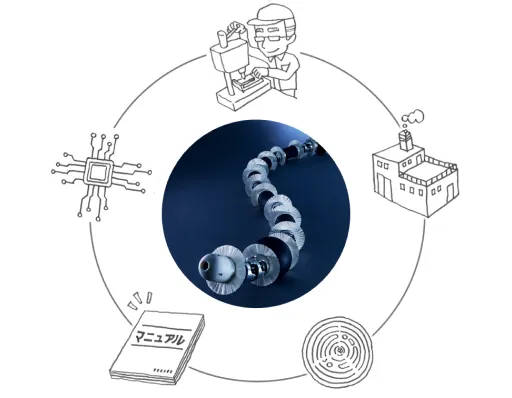 株式会社ソラリスは、中央大学理工学部精密機械工学科バイオロボティクス・メカトロニクス研究室において中村太郎※1教授が20年以上研究してきた、生体模倣※2型のソフトロボット※3の社会実装に取り組んでいる会社です。コア技術である空気の出し入れで伸び縮みする人工筋肉を使って、さまざまな生物の動きを参考にした製品の開発に、中村教授や研究室の支援を受けながら挑戦しています。