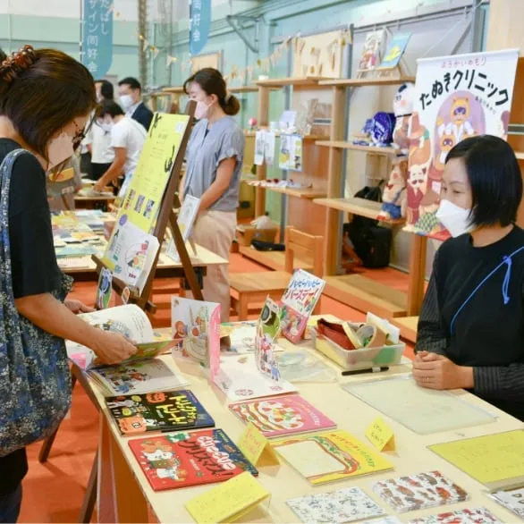 イタリア・ボローニャ国際絵本原画展入選者など、板橋区ゆかりの絵本作家、クリエイターによるグッズ販売やワークショップ。絵本だけでなくおしゃれな雑貨やかわいいグッズを買ったり、自分だけのオリジナルグッズを作ったりできます!
