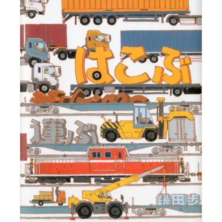 時代とともに進化していく運搬技術を描いた作品。「運びたい」「届けたい」という人々の思いが便利な道具や乗り物を生み出し、陸・海・空と様々なルートで人や物が運ばれるようになります。フォークリフト、クレーン車、コンテナ船、ジェット飛行機に宇宙ロケットなど、詳細に描かれた機械や乗り物は迫力いっぱい!よりはやく、たくさん、あんぜんに、とおくへ。運んだり、運ぶための環境を整えたりする人の姿から、インフラや技術革新を支える力と思いが伝わります。(中央図書館・小柳)